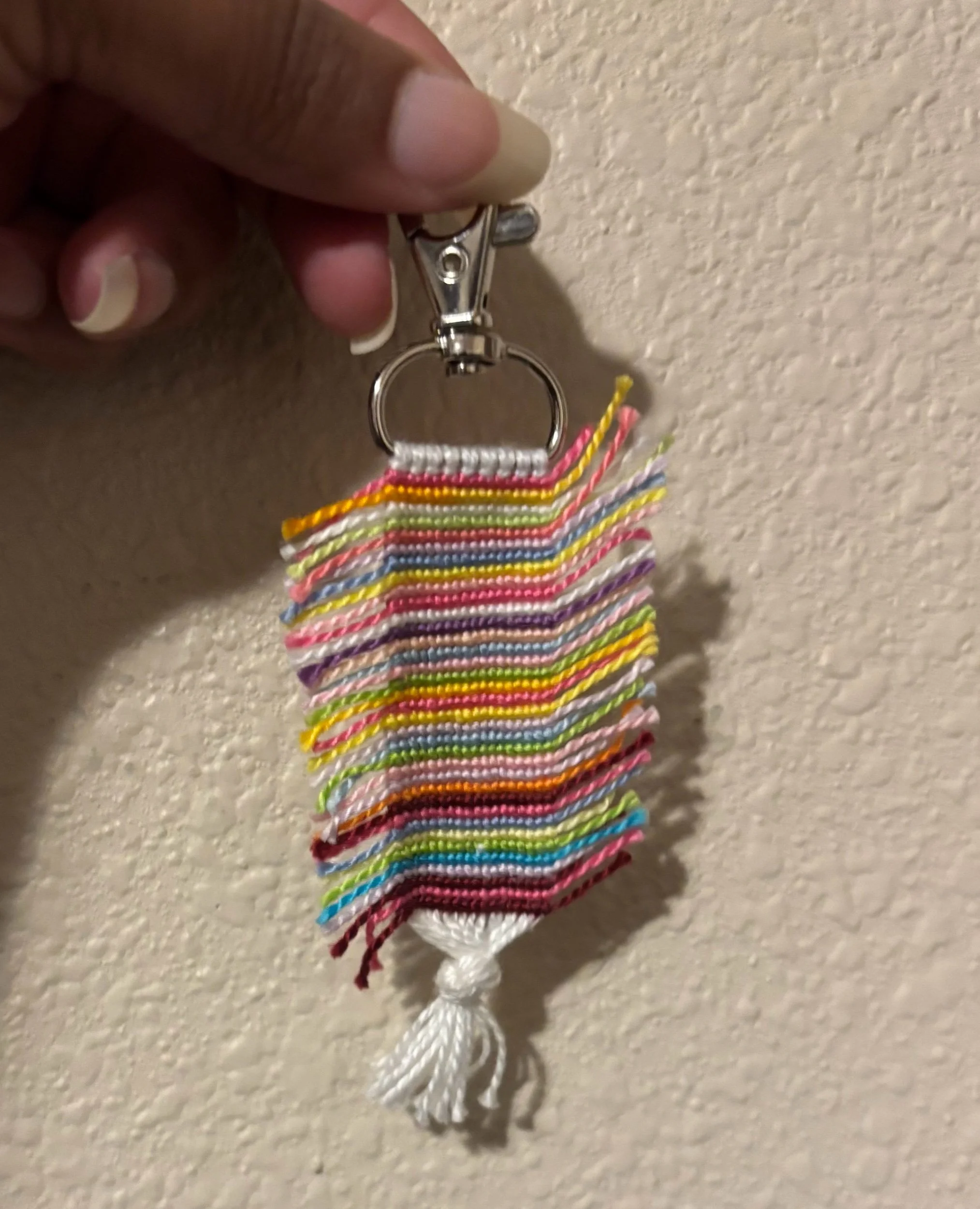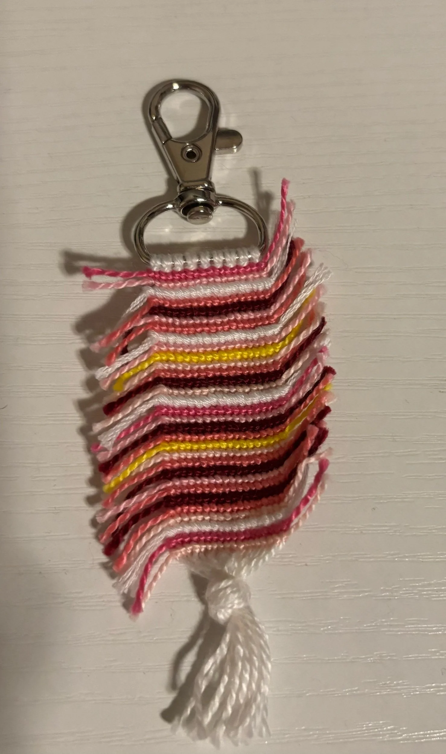Shop › Rug Rag Keychain #2 Image 1 of 3 Image 2 of 3 Image 3 of 3 Rug Rag Keychain #2 $5.00 This bracelet is 3 inches long and made from leftover embroidery floss from previous projects. Add To Cart Added! This bracelet is 3 inches long and made from leftover embroidery floss from previous projects. Rug Rag Keychain #1 $5.00 Add Added! Pride Spiral Nylon Bracelet $12.00 Add Added! Upcycled Pink Bucket Bucket Hat $40.00 Add Added! You Might Also Like Rug Rag Keychain #1 $5.00 Rug Rag Keychain #3 $5.00